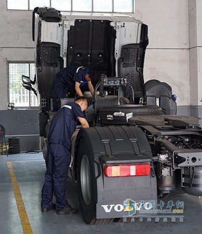 维修人员对沃尔沃卡车进行售后服务
