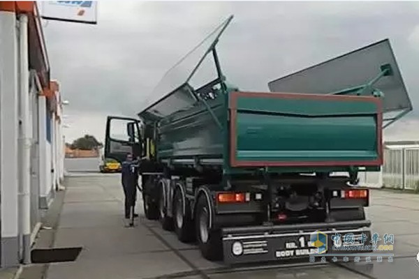 此外,渣土车的厢体尾部开关也是采用智能化操作的,一方面开关方便,另一方保证了车厢的密闭性。