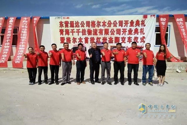 2017年9月16日,上汽依维柯红岩商用车有限公司(以下简称“上汽红岩”)经销商——东营通达格尔木汽车销售分公司,在格尔木市举行了盛大的开业典礼,并同期举行了红岩杰狮C500系列16台牵引车交付青海某物流公司的交车仪式。上汽红岩网络规划处经理、甘肃销售服务中心经理、东营通达总经理、格尔木分公司总经理、格尔木区域各行业客户以及相关领导共计160余人参加本次活动。