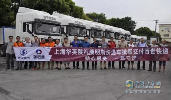 上海华英陕汽康明斯快递车批量交付百世快递