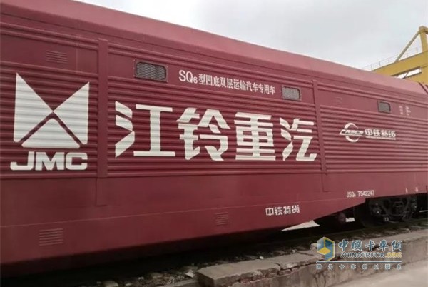 2017年10月12日,随着一声高昂的汽笛,一列喷绘着江铃重卡、中铁特货汽车物流公司与中联物流共创先河的铁路商品汽车运输专用列车,满载着江铃商品汽车缓缓地驶出江西国储物流有限公司专用线,从这里奔向白山黑水,奔向大漠戈壁。
