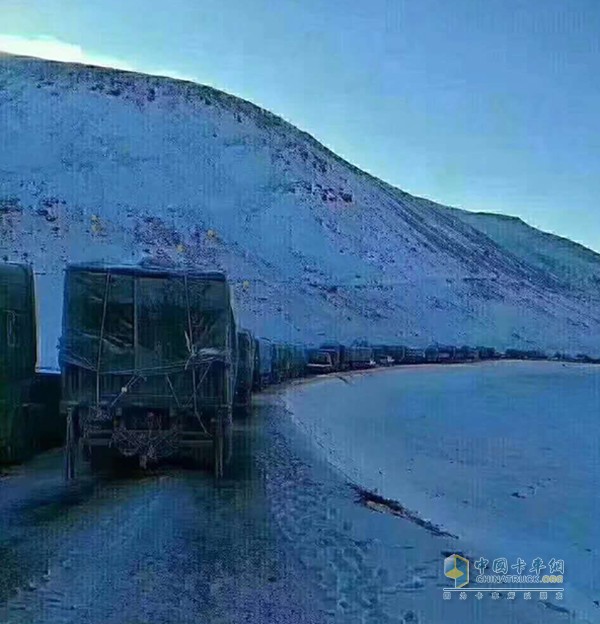 青藏线被困的重卡车队