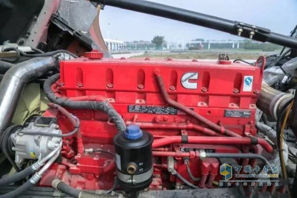 这辆陕汽康明斯X3000采用的是西安康明斯生产的ISM11E5440马力发动机,采用SCR后处理系统,排放满足了国V标准。该款发动机是国内最早引进的康明斯重型柴油机之一,也是在美国乃至全世界市场多次验证的产品,可靠性相当高。百万公里无大修,且B10设计寿命能够达到200万公里,能够强有力的保障全程运输过程。