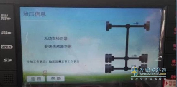 这辆X3000危险品运输车的胎压监测系统和我们常见的主动胎压监测系统有所不同。该车采用了轿车上使用较多的被动胎压监测,它的优点就是利用ABS防抱死系统上安装的轮边传感器计算车轮的滚动周长判断轮胎胎压,减少了额外设备的安装开支。