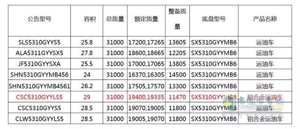 截止299批公告,新M3000运油车产品已发布以下9款整车公告:
