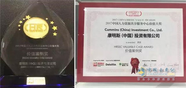 2017年11月22日,由上海人力资源智享会主办的2017“中国人力资源共享服务中心价值大奖”颁奖典礼于上海举行。康明斯(中国)投资有限公司人力资源共享服务中心凭借其卓越的服务,获得“2017最佳价值案例奖”。‘